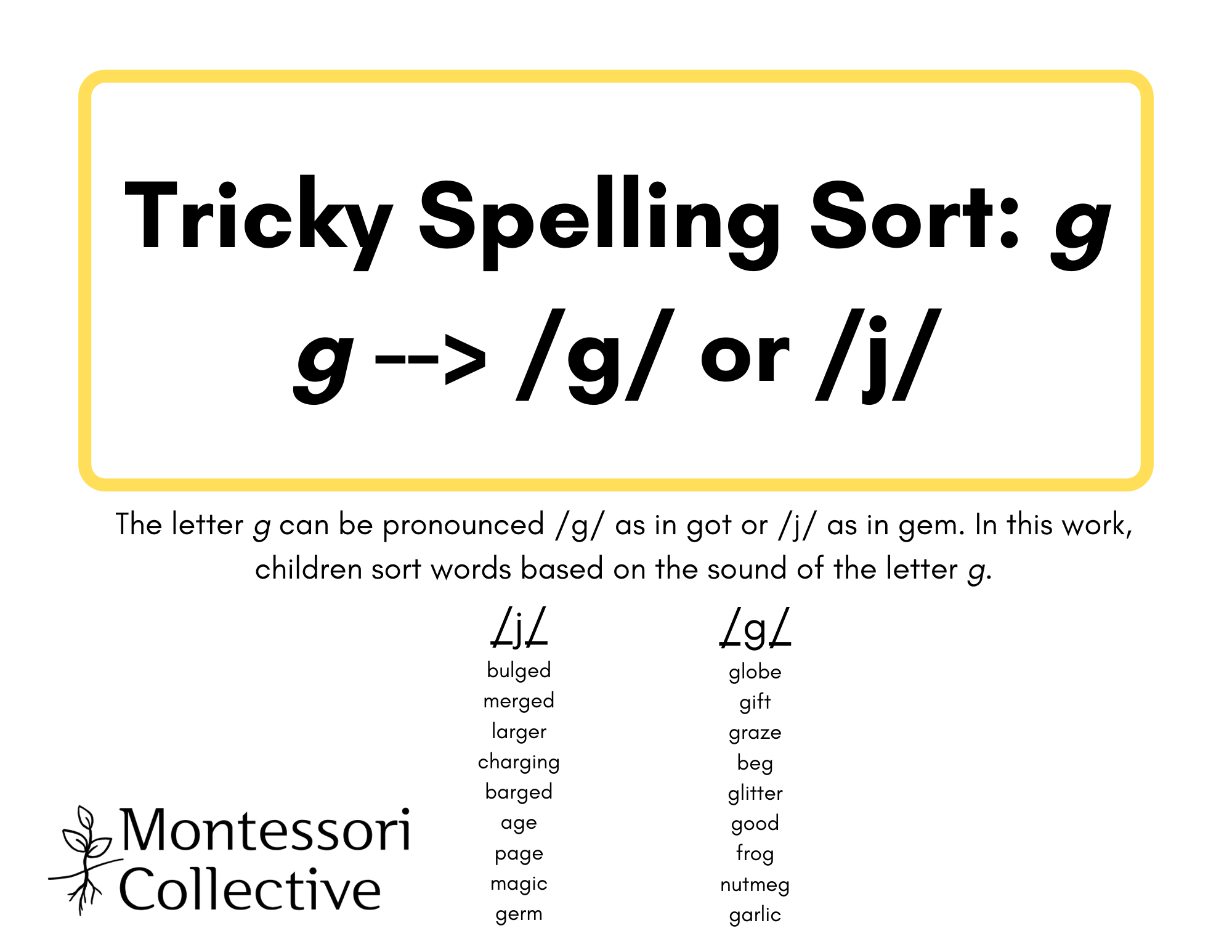 Tricky spellings are spelling patterns that can have more than one pronunciation. the letter g can be pronounced /g/ or /j/. This bundle includes sorting activities for the following tricky spelling patterns: