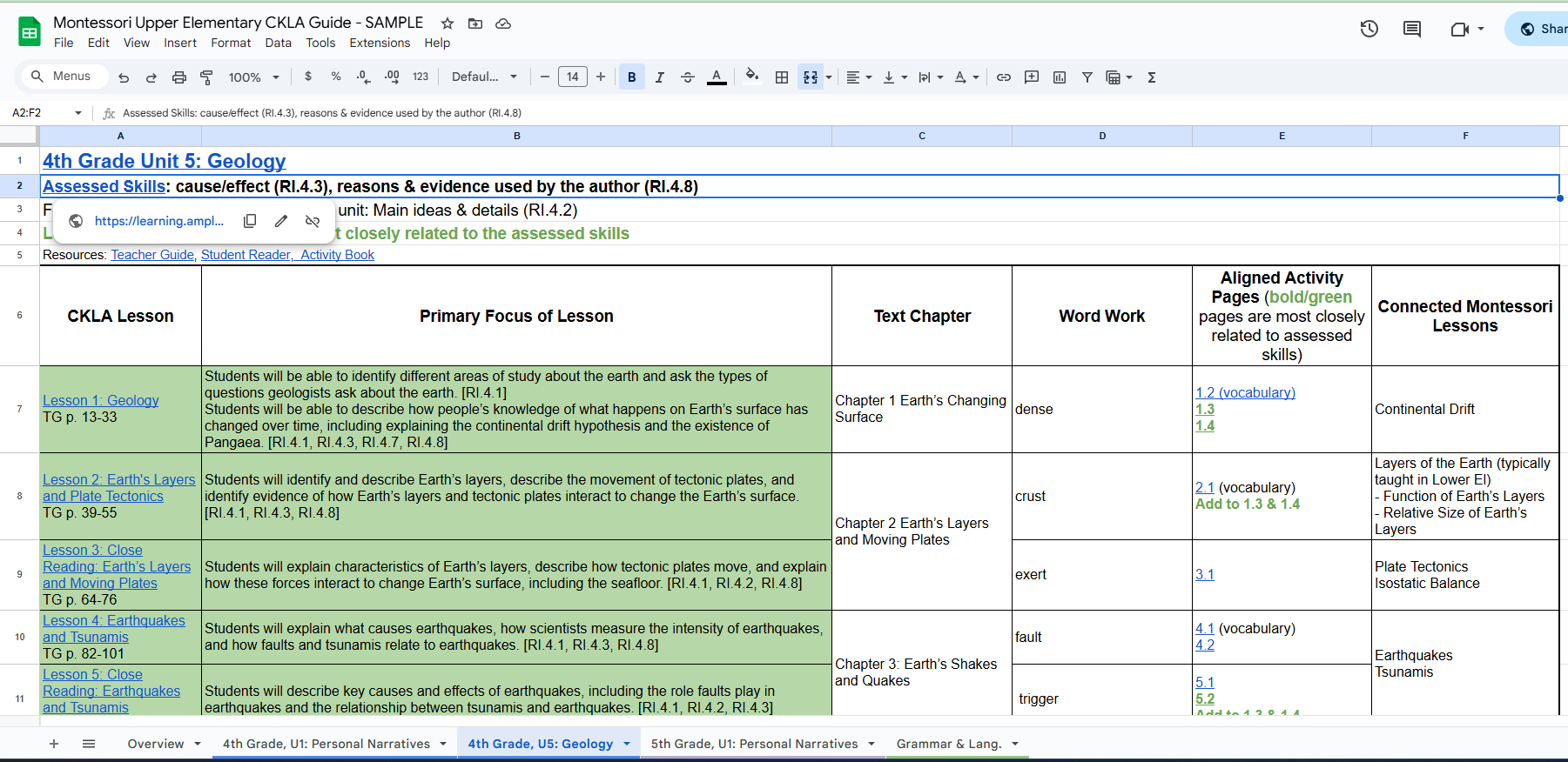 These resources support implementing CKLA in Upper Elementary Montessori classrooms. They align to the 2nd edition of Amplify CKLA (not the 3rd edition, published in 2025). The resources include: